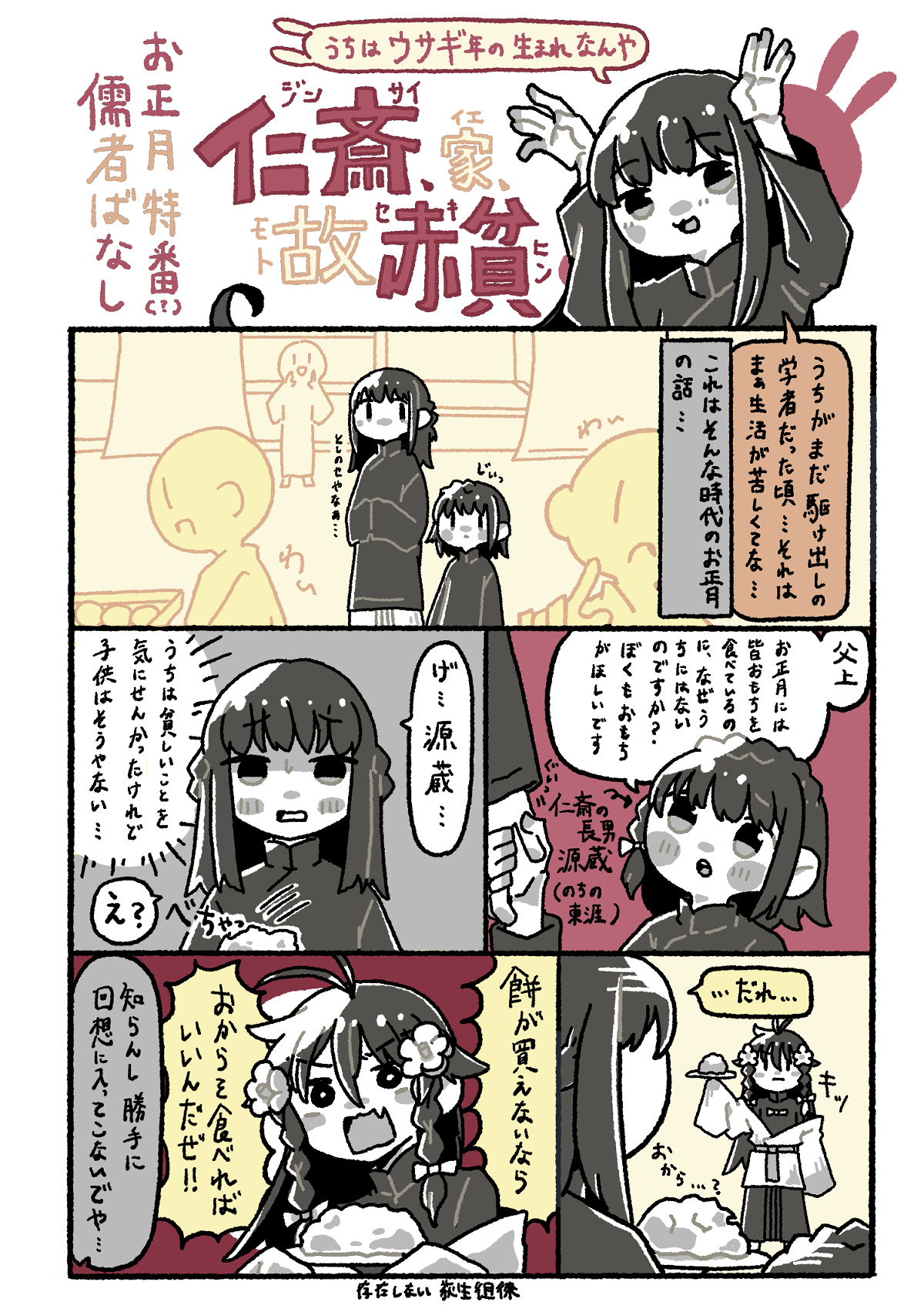 仁斎家故赤貧 堀川 2026.01.06 仁斎さん家のお正月 いつだったかのお正月に描いたやつ…。仁斎家故赤貧って高校の漢文の授業でやりませんでした?うちだけ? favorite0いいね送信中です×※コメントは最大500文字、5回まで送信できます送信送信中です送信しました!